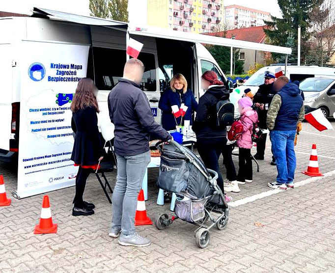 Zespół ds. Profilaktyki Społecznej Komendy Miejskiej Policji w Olsztynie przy współpracy z Komendą Wojewódzką Policji w Olsztynie z okazji obchodów Święta Niepodległości obecny był na zorganizowanym festynie, który cieszył się ogromną popularnością. Organizatorzy przygotowali gry, łamigłówki i konkursy dla najmłodszych. Do atrakcji przygotowanych przez olsztyńskich policjantów należały m.in.: koło fortuny, radiobus, mini miasteczko ruchu drogowego, stoisko z pomocami pakietu ,,Profilaktyka Smyka” - książeczkami i kolorowankami o przygodach Poli i policjanta. Można było z bliska przyjrzeć się policyjnym radiowozom i umundurowaniu oraz zrobić zdjęcie z funkcjonariuszem policji. Najmłodsi otrzymywali również odblaski za udział w przygotowanym quizie wiedzy o bezpieczeństwie.