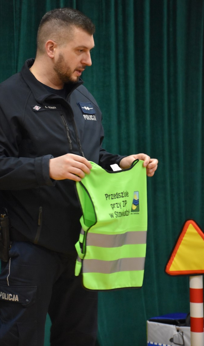 We wtorek (12.12.2023 r.) dzielnicowy z Posterunku Policji w Stawigudzie asp. Łukasz Górka na zaproszenie Pana Michała Kontraktowicza Wójta Gminy Stawiguda, wziął udział w spotkaniu z najmłodszymi mieszkańcami gminy – z przedszkolakami z Bartąga oraz Stawigudy. Wszyscy jednogłośnie, razem z policyjną maskotką Sierżantem Żabusiem, zachęcali do tego, aby nosić elementy odblaskowe podczas codziennych spacerów, a głównym punktem spotkania było poszerzanie wiedzy z zakresu bezpieczeństwa w ruchu drogowym oraz przekazanie dzieciom kamizelek odblaskowych. Spotkanie stanowiło świetną okazję do przypomnienia o ważnych działaniach ,,Noś odblaski - Bądź widoczny”. Policjant podkreślał, że używanie elementów odblaskowych przez pieszych, szczególnie w okresie zimowym, kiedy wcześnie zapada zmrok sprawia, że stajemy się widoczni, a tym samym bardziej bezpieczni. Najmłodsi dowiedzieli się, że element odblaskowy powinien być umieszczony w takim miejscu, by znalazł się w polu działania świateł samochodowych i był zauważalny dla kierujących nadjeżdżających z obu kierunków (z tyłu i z przodu). Dużą ciekawość dzieci wzbudził sprzęt policyjny, któremu mogły się przyjrzeć, czy założyć czapkę policyjną. Dzieci z grup przedszkolnych również na co dzień korzystają z mini miasteczka ruchu drogowego i zestawu Autochodzik, poszerzając swoją wiedzę z zakresu bezpieczeństwa. Kamizelki odblaskowe otrzymane z rąk Pana Wójta oraz policjanta dzielnicowego, będą chronić bezpieczeństwo dzieci w drodze do przedszkola i w czasie powrotu do domu, a także, dzięki nim dzieci będą lepiej widoczne podczas codziennych spacerów.