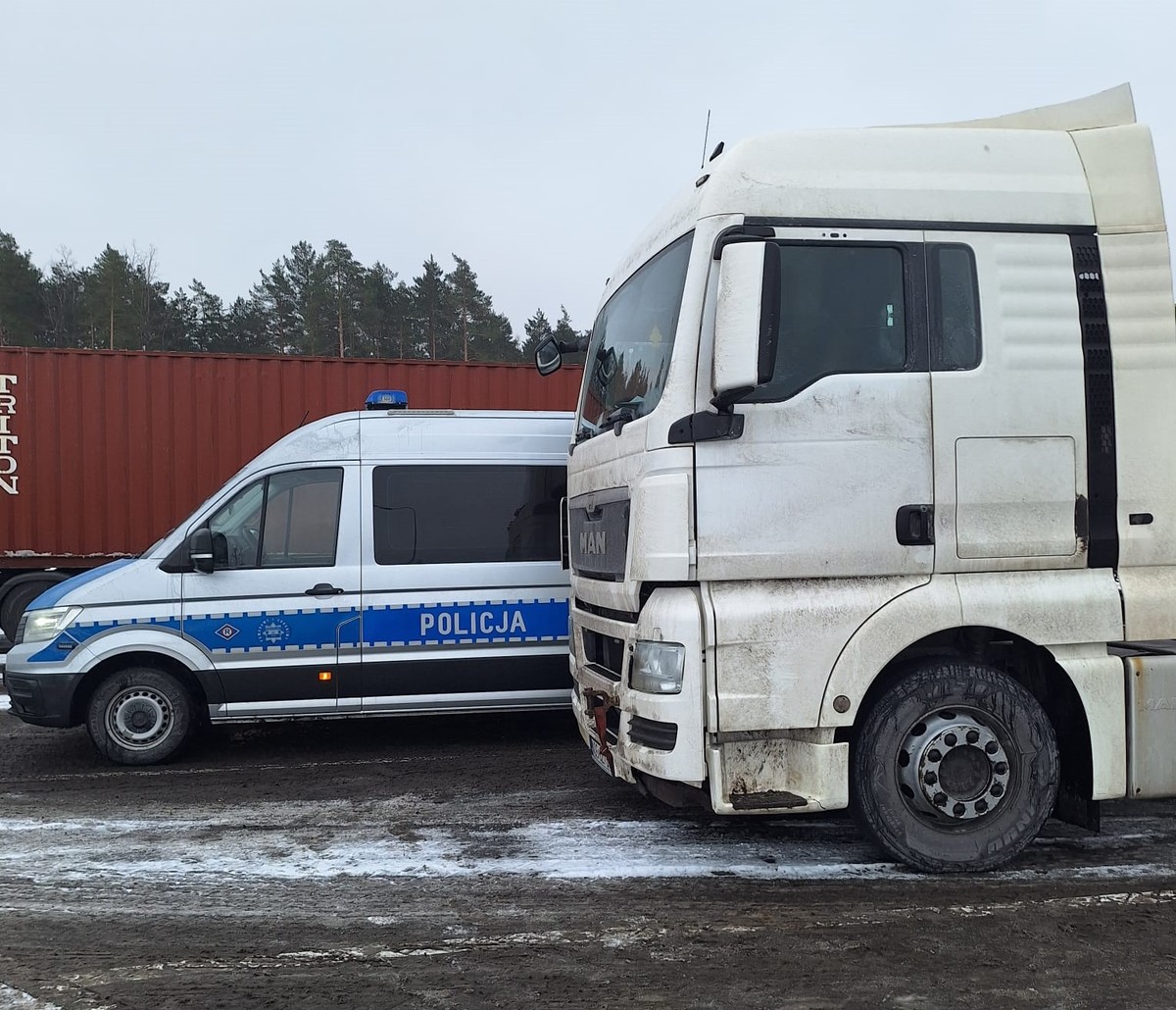 W środę (18.02.2026 r.) rano policjanci z Wydziału Ruchu Drogowego olsztyńskiej komendy miejskiej pracowali przy krajowej siódemce w okolicach Olsztynka. Mundurowi zatrzymali do kontroli drogowej 23-letniego kierującego zestawem ciężarowym. Stan techniczny w jakim znajdował się pojazd dawał wiele do życzenia.