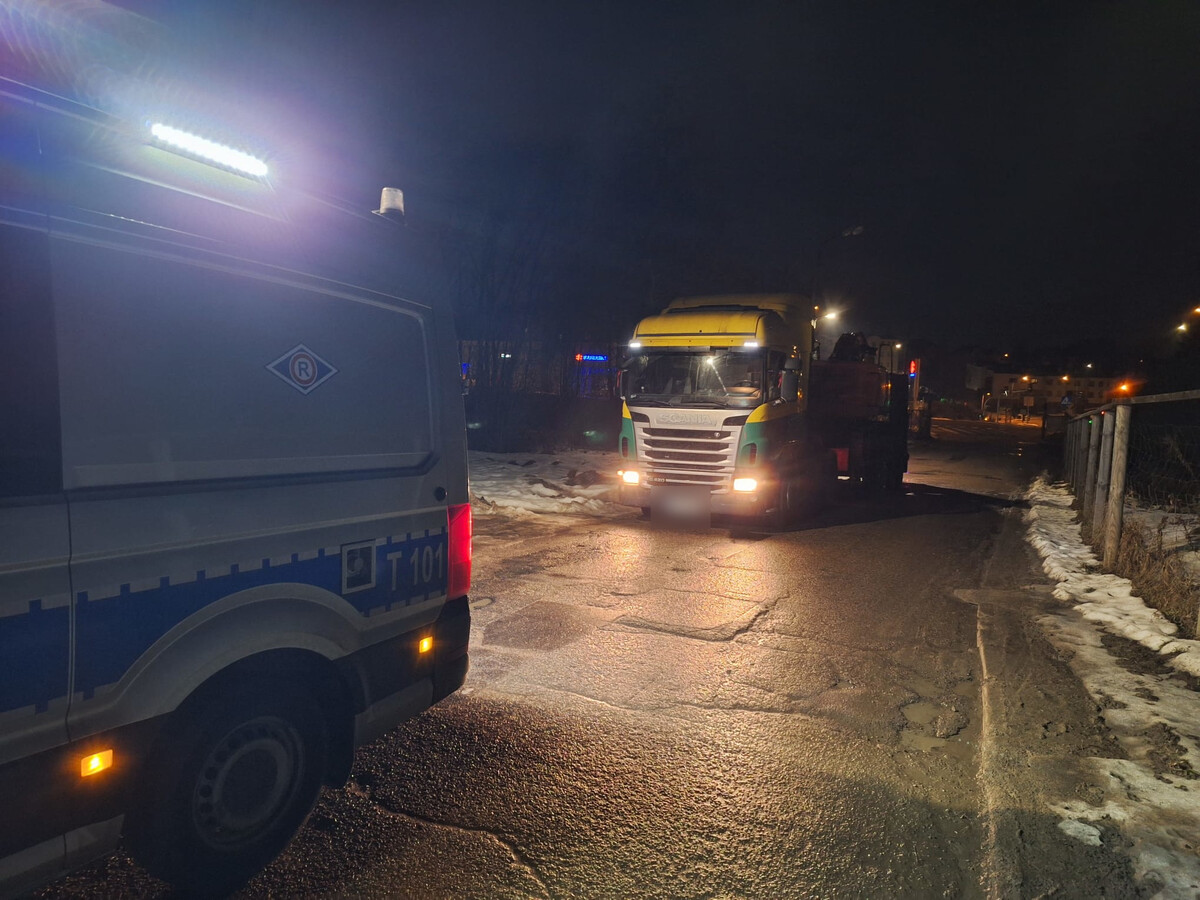 Przewóz ponadgabarytowych ładunków w środku nocy to dobry pomysł, ruch na ulicach jest wtedy znikomy. Warto jednak, aby kierowca, który realizował taki przewóz miał odpowiednie uprawnienia, pojazd był w pełni sprawny, a ładunek wystający poza obrys naczepy odpowiednio oznaczony. 41-letni kierowca Scanii nie spełnił tych warunków. Będzie tłumaczył się przed sądem.