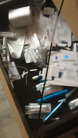 Poza tym w mieszkaniu funkcjonowała linia produkcyjna z chemikaliami, szklanymi ampułkami, strzykawkami i podrobionymi opakowaniami z nadrukowanymi nazwami handlowymi środków dopingujących opartych na testosteronie i popularnych leków sprzedawanych na receptę i wykorzystywanych przy leczeniu otyłości i cukrzycy.