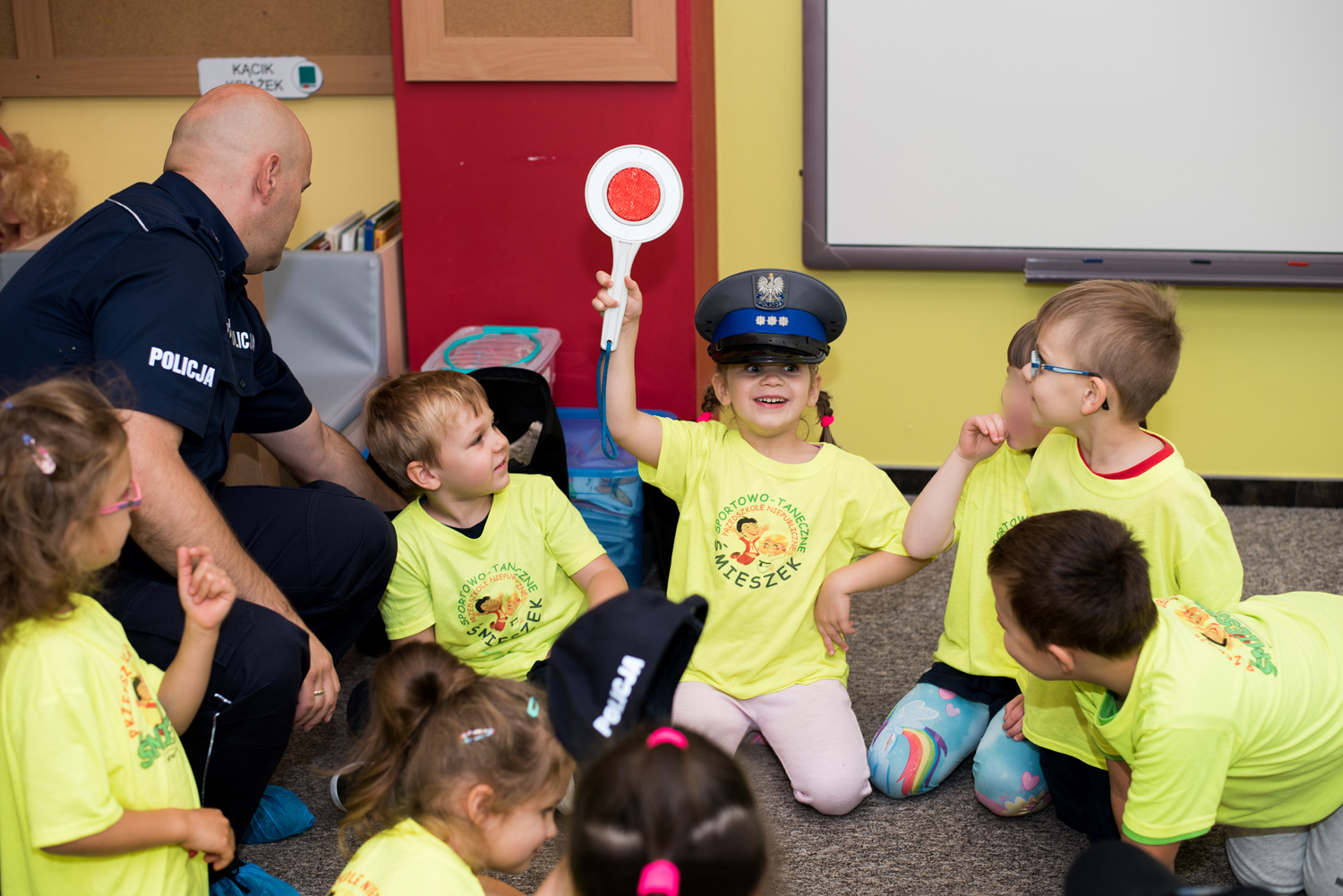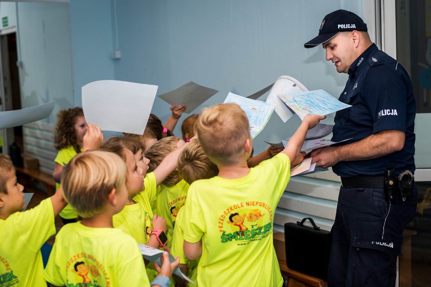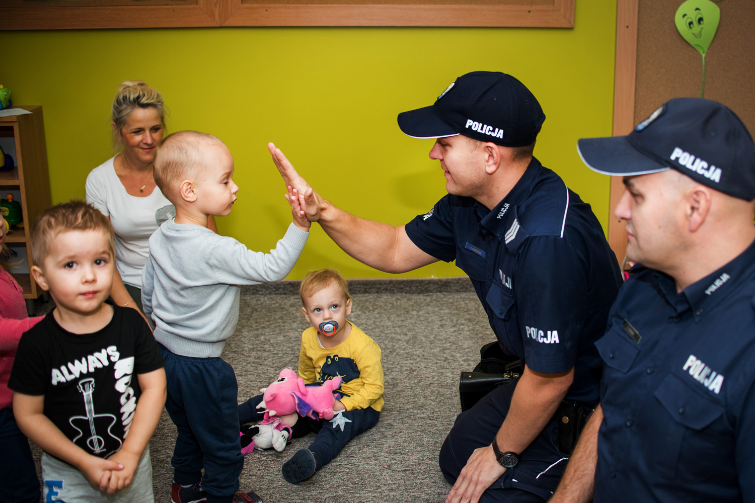Wizytę policjantów dzieci oceniły na piątkę – i dla potwierdzenia „przybiły” ją z policjantami.