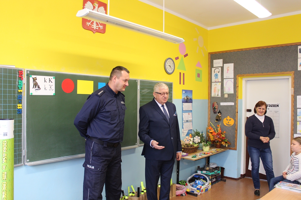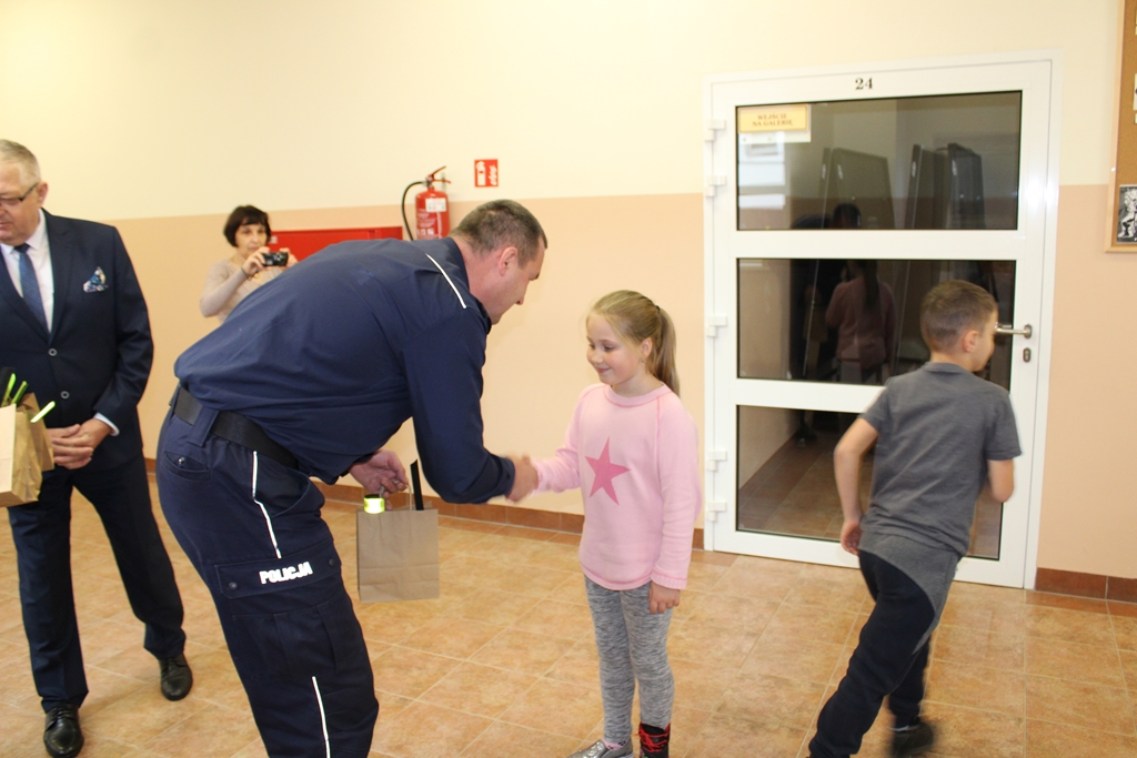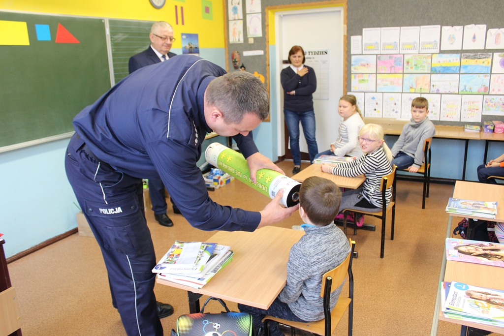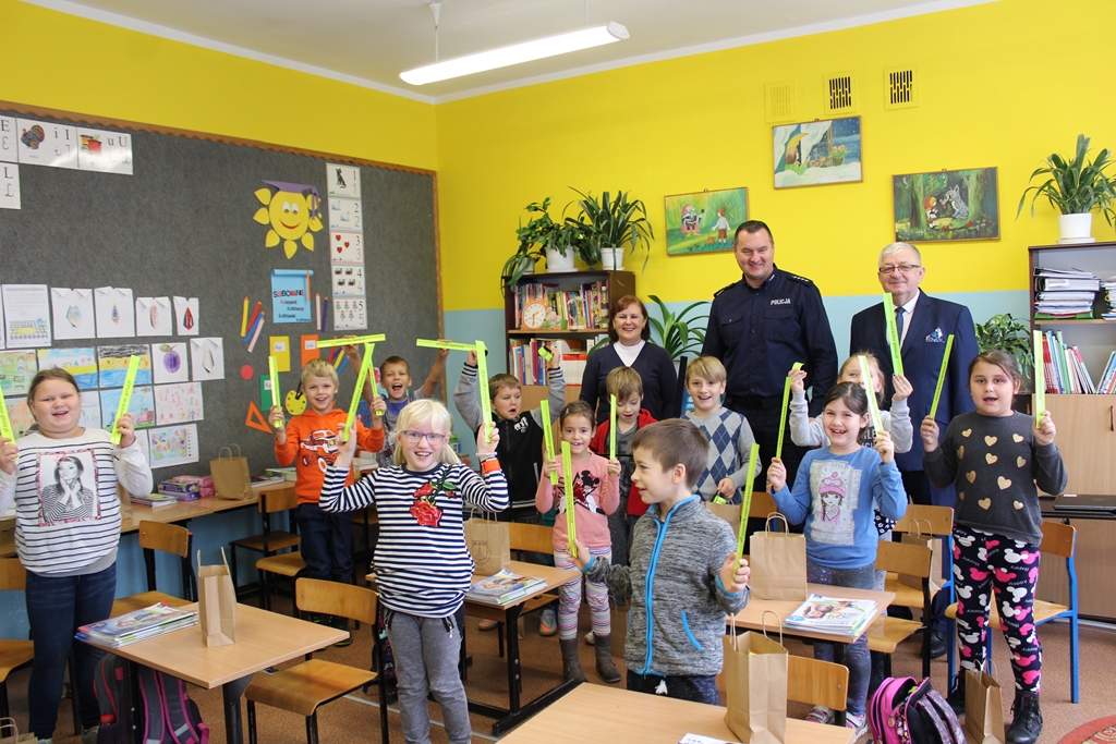 Podczas spotkań policjant opowiedział uczniom o przepisie prawa, który nakłada na wszystkich obowiązek noszenia elementów odblaskowych po zmierzchu, poza obszarem zabudowanym. Korzystając z tzw. „magicznej tuby”, pokazał, jak elementy odblaskowe poprawiają naszą widoczność, gdy mija nas samochód. Funkcjonariusz zachęcił, by szczególnie jesienną i zimową porą, odblaski były stałym elementem wyposażenia każdego ucznia. Wójt Gminy Kolno obdarował wszystkich uczestników spotkań elementami odblaskowymi i wspólnie z policjantem ozdobił nimi odzież każdego ucznia.