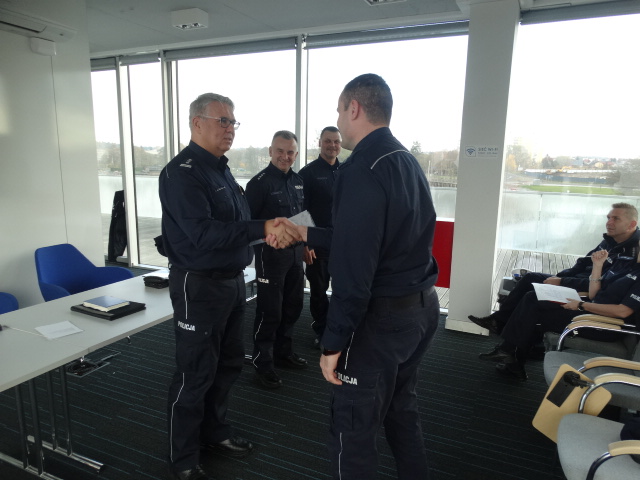 Następnie głos zabrali zastępcy Komendanta Miejskiego Policji w Olsztynie. Kom. Robert Stangreciak i nadkom. Marek Dumka podsumowali dotychczasową pracę pionu prewencji oraz kryminalnego.
