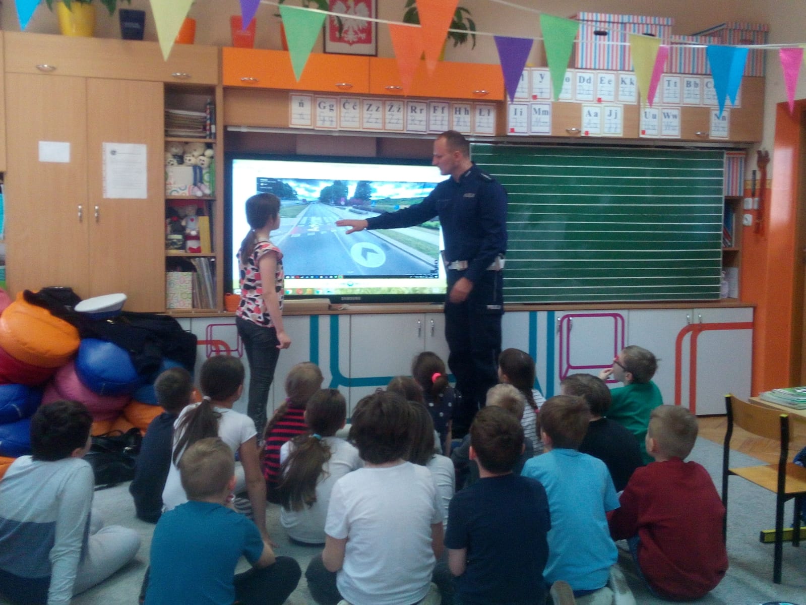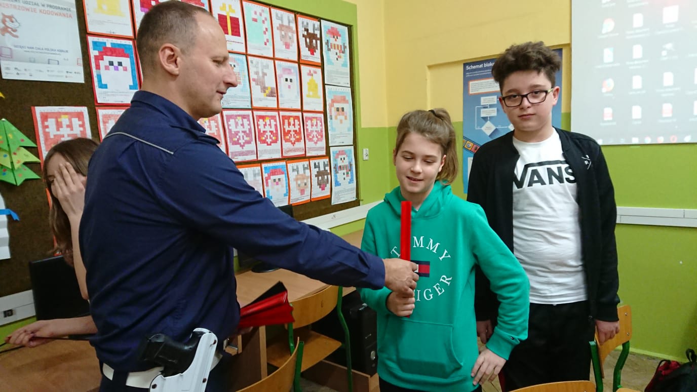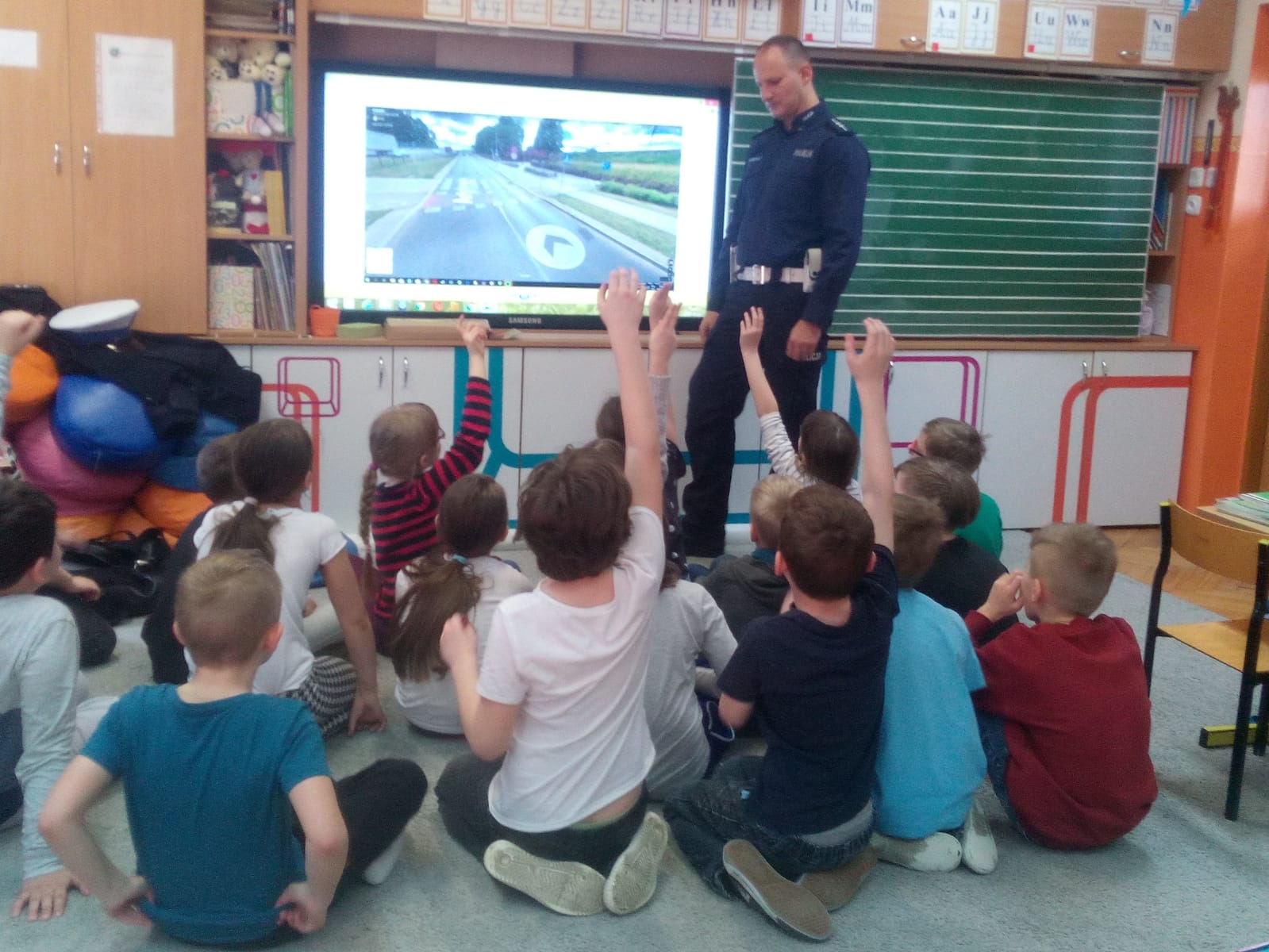 Policjant z olsztyńskiej drogówki asp. Cezary Piotrowski odwiedził dzieci ze Szkoły Podstawowej nr 13 w Olsztynie. Funkcjonariusz tłumaczył jak należy prawidłowo zachowywać się na drodze aby być bezpiecznym. Uczniowie szkoły podstawowej dowiedziały się również jaki wpływ na ich bezpieczeństwo mają elementy odblaskowe, które na koniec zajęć trafiły do rąk uczniów. Spotkanie z młodzieżą szkolną było również doskonałą okazją do zaprezentowania atutów służby w Policji.