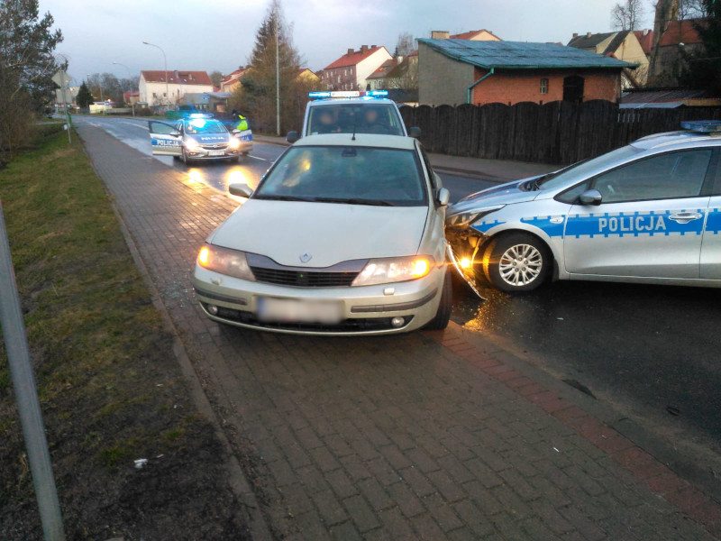Mężczyzna kontynuował ucieczkę, jadąc całą szerokością drogi, tym samym stwarzając realne zagrożenie dla innych uczestników ruchu drogowego. W pewnym momencie kierujący osobowym renault, podczas próby jego zatrzymania przez drugi policyjny patrol, uderzył w ich radiowóz. Następnie do pościgu włączył się kolejny patrol, którego policjanci ostatecznie użyli radiowozu jako środka przymusu bezpośredniego i zmusili kierowcę do zatrzymania się na jednej z głównych ulic w Barczewie.