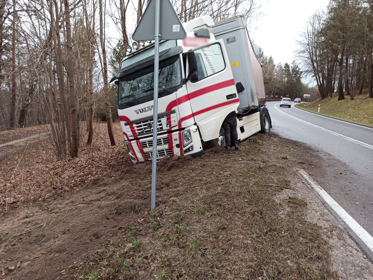 Tego samego dnia doszło do kolejnego zdarzenia drogowego. Tym razem na DK 16 w m. Rapaty. W tym przypadku jego przyczyną było również niedostosowanie prędkości do warunków panujących na drodze. 24-letni kierujący ciężarowym volvo zjechał do przydrożnego rowu, gdzie uderzył w barierki ochronne. W wyniku zdarzenia nikt nie trafił do szpitala. Utrudnienia w ruchu drogowym w tym miejscu trwały kilka godzin do czasu wyciągnięcia pojazdu ciężarowego z przydrożnego rowu przez specjalistyczny holownik.