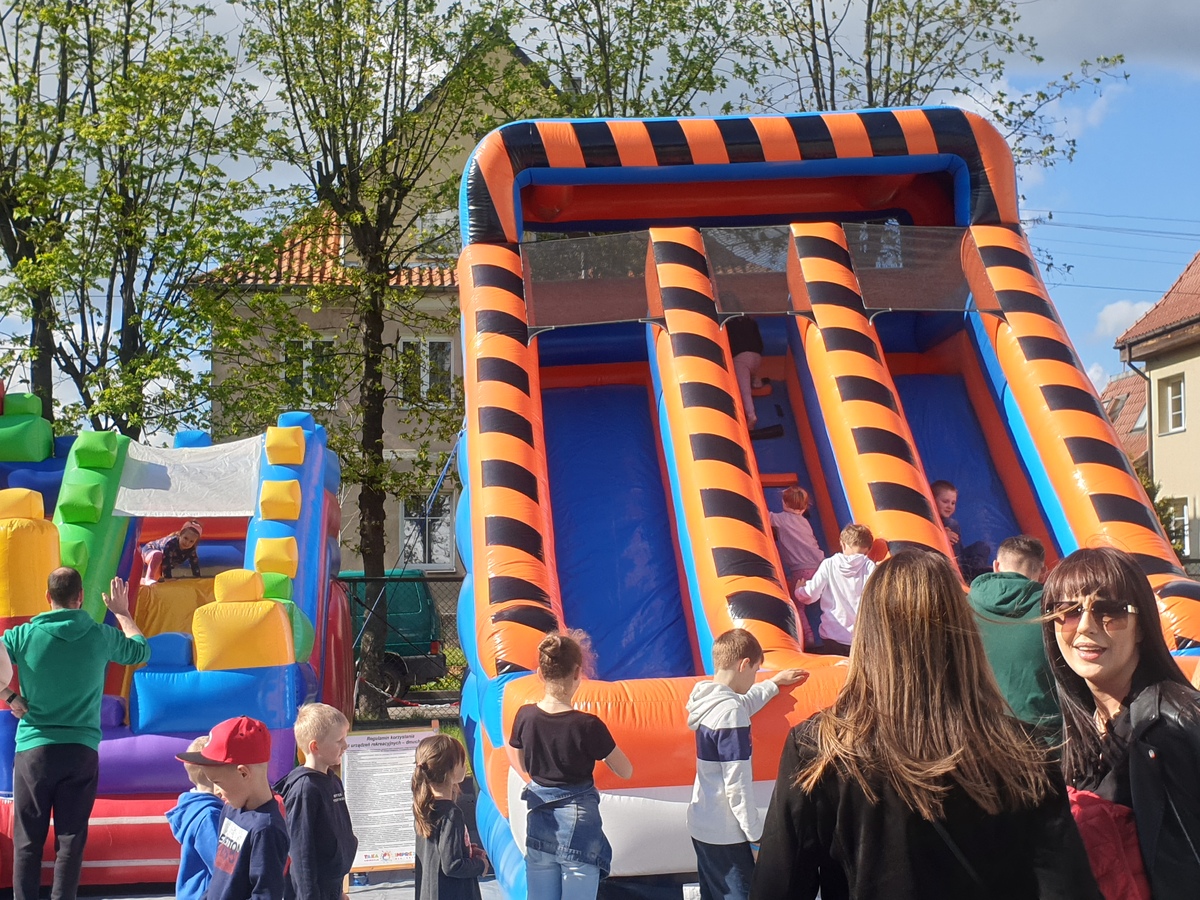 Dodatkowymi atrakcjami były dmuchane zjeżdżalnie oraz zamki, z których bez ograniczeń mogły korzystać wszystkie dzieci. Kolejka do zjazdu była dłuuuuga. Takie atrakcje zostały zapewnione przez przyjaciół Komisariatu Policji w Biskupcu. Organizatorzy zadbali także o żołądki gości na których czekała grillowana kiełbaska z pieczywem, a do popicia przygotowano kawę, herbatę w tym „kawę małego policjanta”.