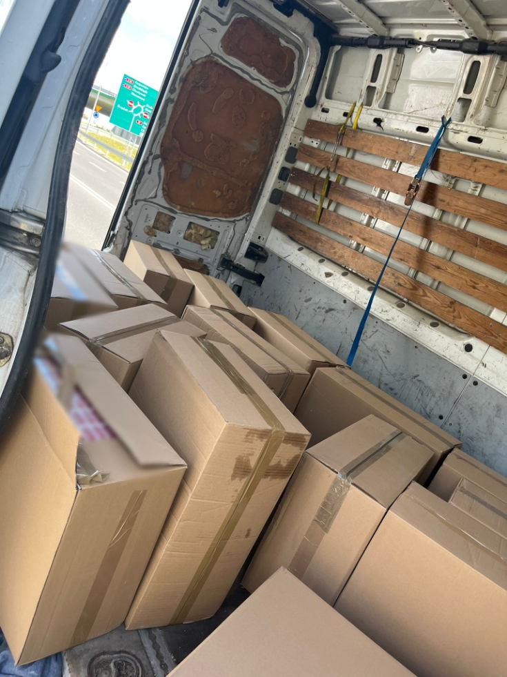 W sobotę (11.06.2022 r.) po południu policyjni wywiadowcy po tym, jak weszli w posiadanie informacji dotyczących podejrzenia transportu nielegalnych wyrobów tytoniowych, namierzyli i zatrzymali do kontroli drogowej pojazd, którym miały być przewożone papierosy. Kontroli dokonano na terenie Olsztyna. Podejrzenia policjantów potwierdziły się bezpośrednio po otwarciu drzwi od przestrzeni ładunkowej dostawczego busa. W aucie znajdowało się dwadzieścia kartonów po brzegi wypełnionych papierosami bez polskich znaków akcyzy. Po przeliczeniu okazało się, że to dokładnie 10 tysięcy paczek nielegalnych papierosów. 45-latek został zatrzymany i osadzony w policyjnym areszcie.