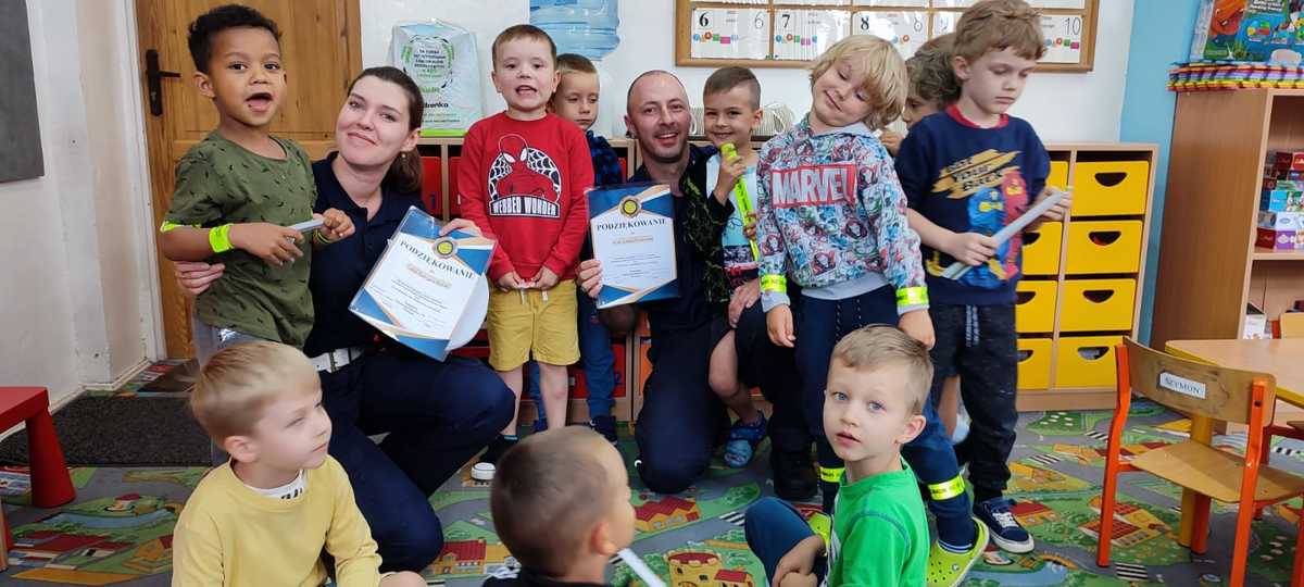 Dumni prelegenci za podzielenie się wiedzą nagrodzeni zostali gromkimi brawami oraz dyplomami z podziękowaniami za wysiłek włożony w edukację najmłodszych. Przedszkolaki zaś za dzielne uczestnictwo w zajęciach, pytania, czy dzielenie się przykładami z życia na temat bezpieczeństwa w ruchu drogowym otrzymały elementy odblaskowe. Słuchaczom z Przedszkola nr 16 AWP w Olsztynie postawiono jeszcze jedno zadanie – podzielenie się i przekazanie otrzymanej wiedzy swoim bliskim i znajomym z najbliższego otoczenia.